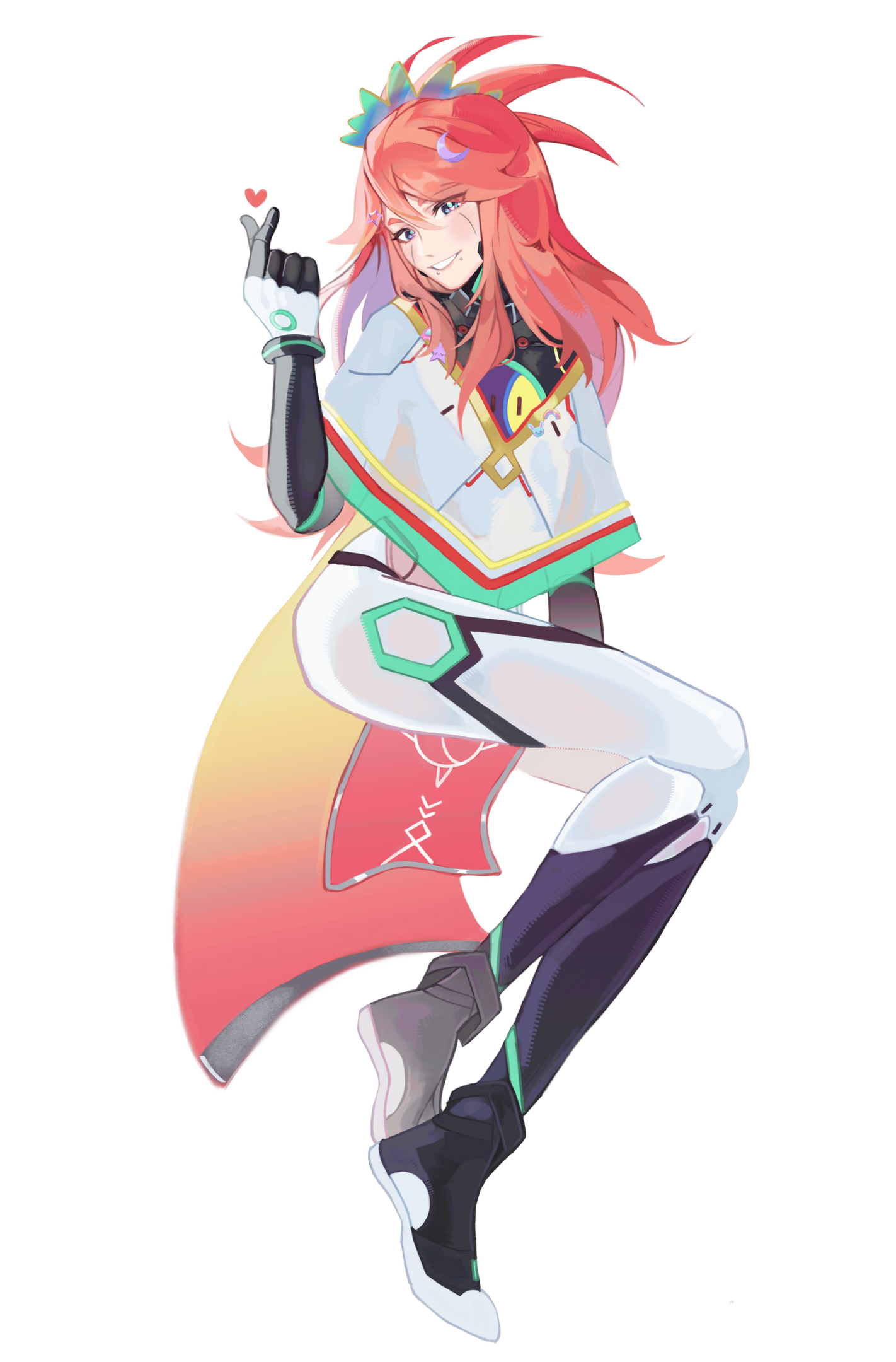 Clean and generally reddish lines, soft solid coloring, hard lights with a simple background.