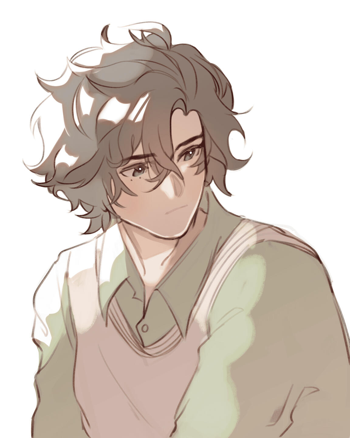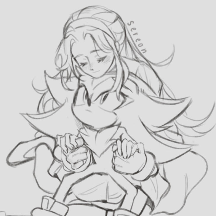 More elaborate sketches with soft colouring, watercolour-like, with cleaner lines,